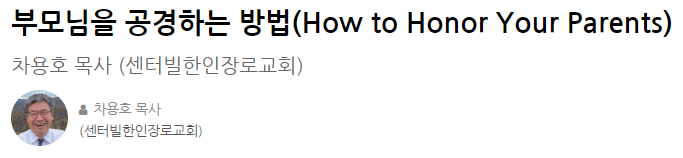 부모를 공경하라는 말씀은 도덕과 윤리이기 이전에 하나님의 명령입니다. "네 부모를 공경하라"(신 5:16상) 이것은 해도 되고 안 해도 되는 문제가 아니라 꼭 해야 되는 엄위하신 하나님의 명령입니다. 부모를 공경하라는 계명은 10계명 가운데 약속이 있는 첫 계명입니다. (엡 6:2) 십계명 중 1계명부터 4계명까지는 하나님에 관한 계명이고, 5계명부터 10계명까지는 인간에 관한 계명입니다. 부모를 공경하라는 계명은 제5계명으로서 인간에 관한 첫...