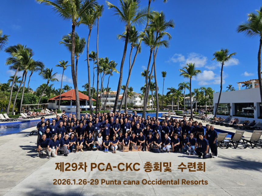 PCA-CKC 제29차 총회 및 수련회를 마친 참석자들이 1년 후 밀워키에서 열릴 PCA-CKC 총회 및 수련회를 기약하며 기념촬영을 하고 있다 PCA-CKC 제29차 총회 및 수련회가 “THE MINISTER”라는 주제로 1월 26일부터 29일까지 3박 4일간 도미니카공화국 푼타카나에서 개최되었다. 이번 수련회에는 목사와 총대장로, 사모 및 자녀들까지 총 163명이 참석해 깊은 은혜와 교제의 시간을 가졌다. 때아닌 역대급 한파와 폭설로 미...
